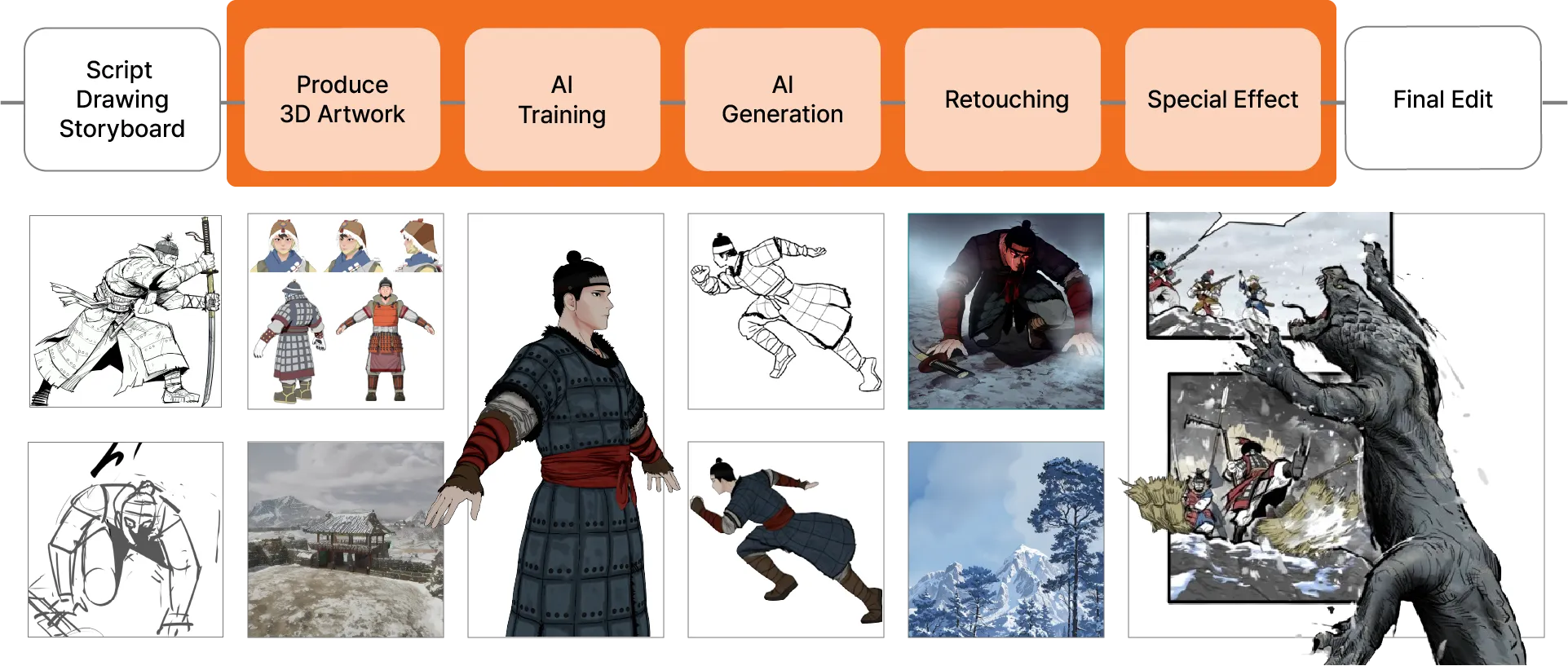 A three-person system to produce high-quality webtoons using AI and 3D technology