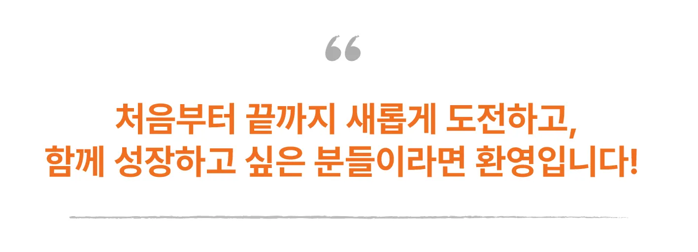 Thomas: 처음부터 끝까지 새롭게 도전하고, 함께 성장하고 싶은 분들이라면 환영입니다! 특히, 학습을 통해 성장하고 싶은 마음이 있는 분들과 함께 하고 싶어요.