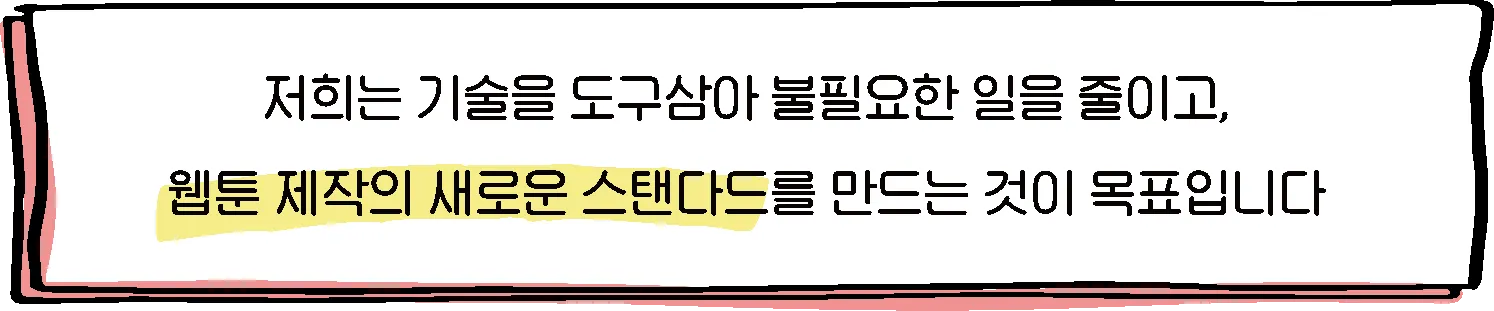 우리는 단순히 기술을 적용하는 게 아닌 새로운 웹툰 제작 방식을 세상에 보여주고 있습니다.